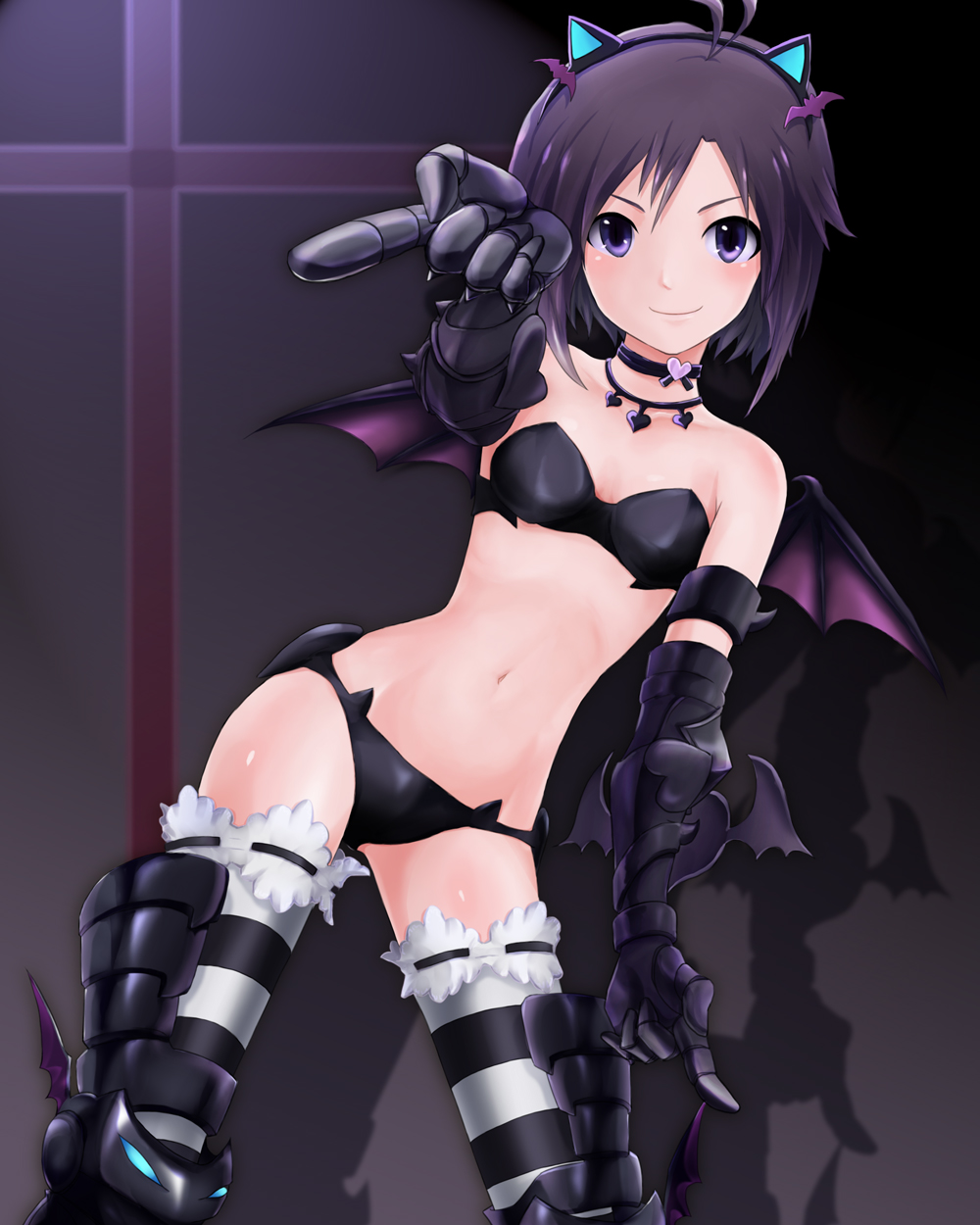 animal earantenna hairarmbandarmorbat wingsbikiniblack hairblack pantieschokerelbow glovesfake animal earFlag for Deletionfrillsglovesheartlooking at viewermidriffnavelnightmare bloodpantiespointingpurple hairshadowshort hairsolostripedstriped legwearswimsuitthighhighswings