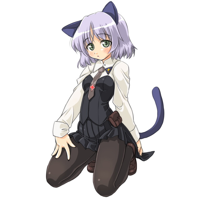 00s1girlanimal earsblack pantyhosecat earscat tailfemale focusgreen eyeslatexnecktiepantyhosepleated skirtshort hairskirtsolotail