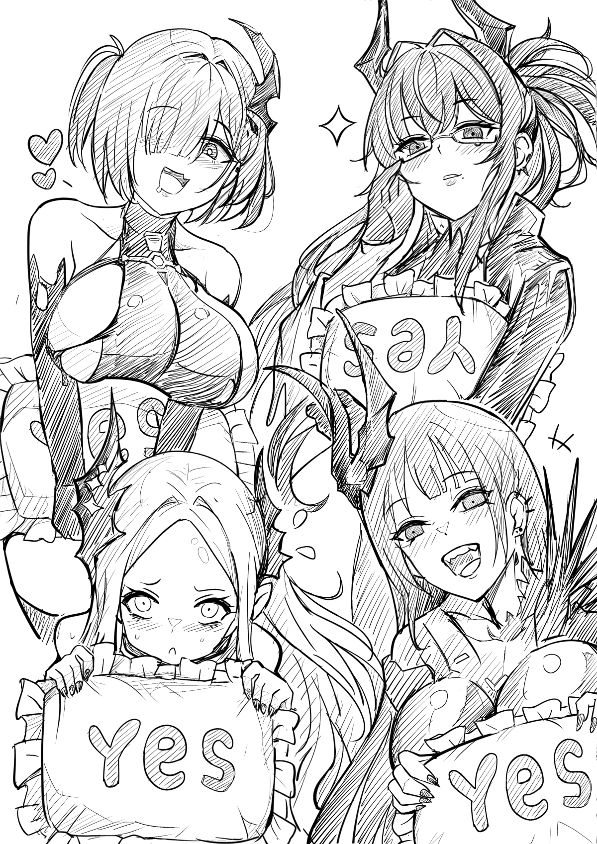 :d1boy4girlsadjusting eyewearbare shouldersblunt bangsblushbreastschest beltcollarbonedroolingear piercingearclipelbow glovesforeheadfour beasts (nikke)glassesgloveshair between eyeshair intakeshair over one eyeheartholdingholding pillowhornsjacketlarge breastsliquid clotheslong hairlooking at viewermolemole under mouthmonochromemouth droolmultiple girlsone side upopen clothesopen jacketopen mouthparted bangsparted lipspiercingpillowpointy earsponytailsideboobsidelockssingle hornsmilesparklesweatteethupper teeth onlyupside-downyes-no pillow
