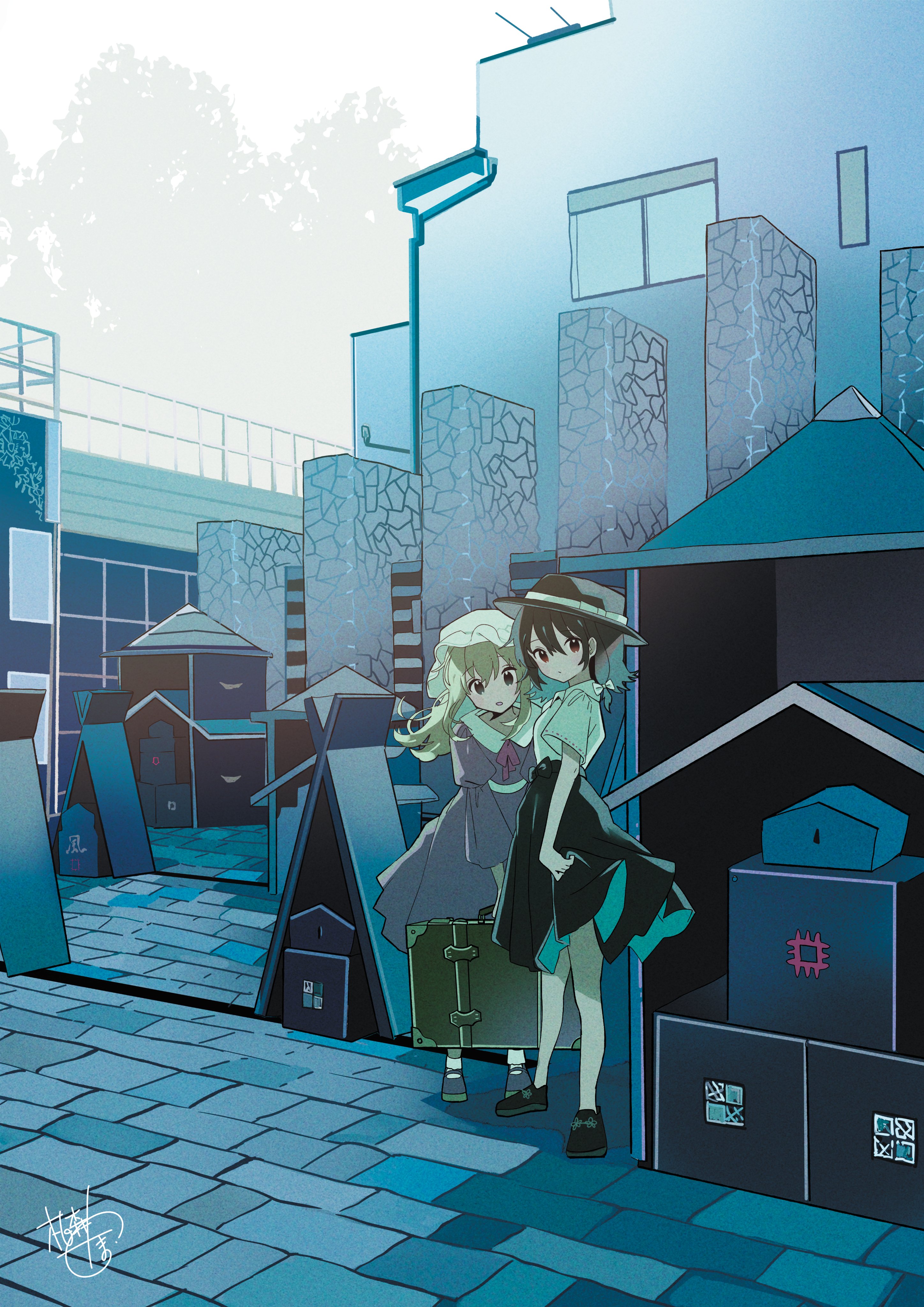 original, highres, 1girl, ahoge, blue eyes, bookshelf, chibi, cupboard, dress, eyebrows hidden by hair, flat chest, full body, globe, gradient eyes, hair ribbon, jar, long hair, looking at viewer, multicolored eyes, open mouth, opening door, peeking out, pocket watch, ribbon, solo, soranomizupoka, thighhighs, twintails, very long hair, watch, white dress, white thighhighs