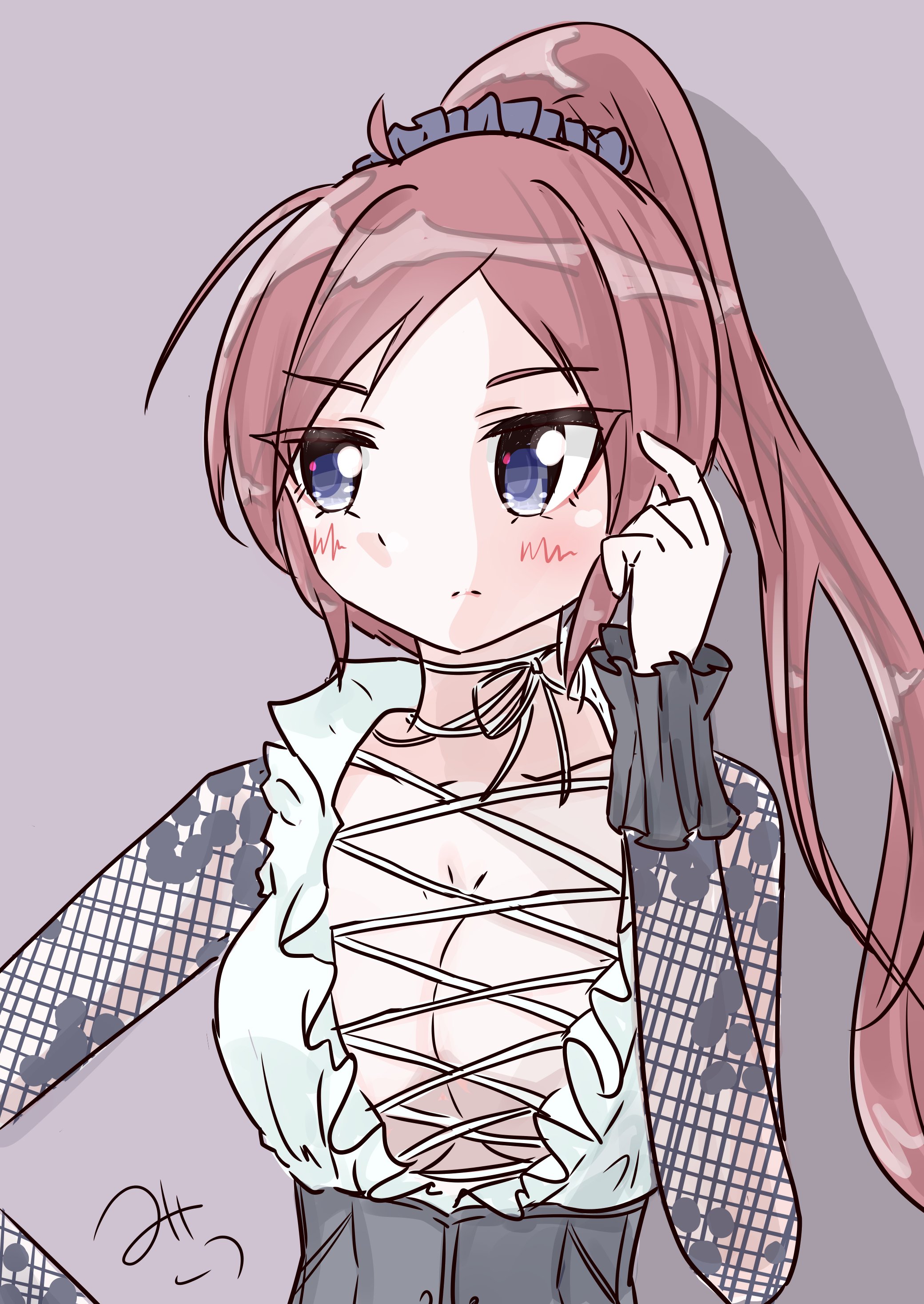 ikeno daigo, rose (street fighter), capcom, street fighter, street fighter iv (series), highres, official art, 1girl, belt, belt skirt, dress, female focus, hagoromo, hair slicked back, long hair, pantyhose, purple eyes, purple hair, shawl, single hair intake, solo