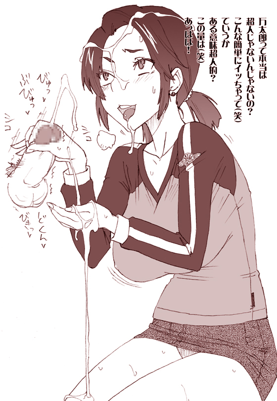 1girlbreastscensoredcleavagecumcum on bodycum on clothescum on haircum on handscum on lower bodycupping handejaculationfacialhandjobheterohuge breastskneelingmonochromemosaic censoringopen mouthpenispinky outshort hairshort twintailsskirtsmilesolo focussweattonguetwintails
