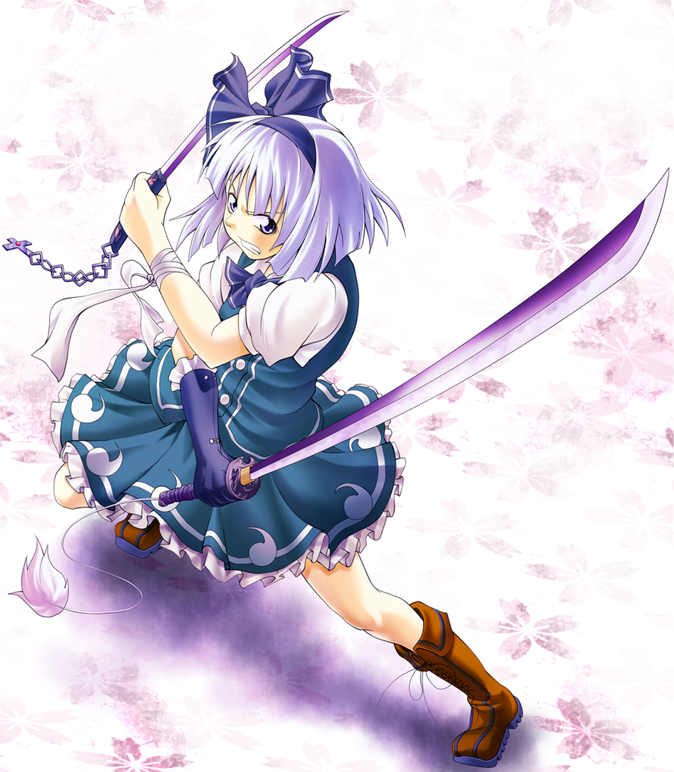 1girlasymmetrical clothesdual wieldingfemale focusglovesholdingkatanasingle glovesoloswordtantoweapon