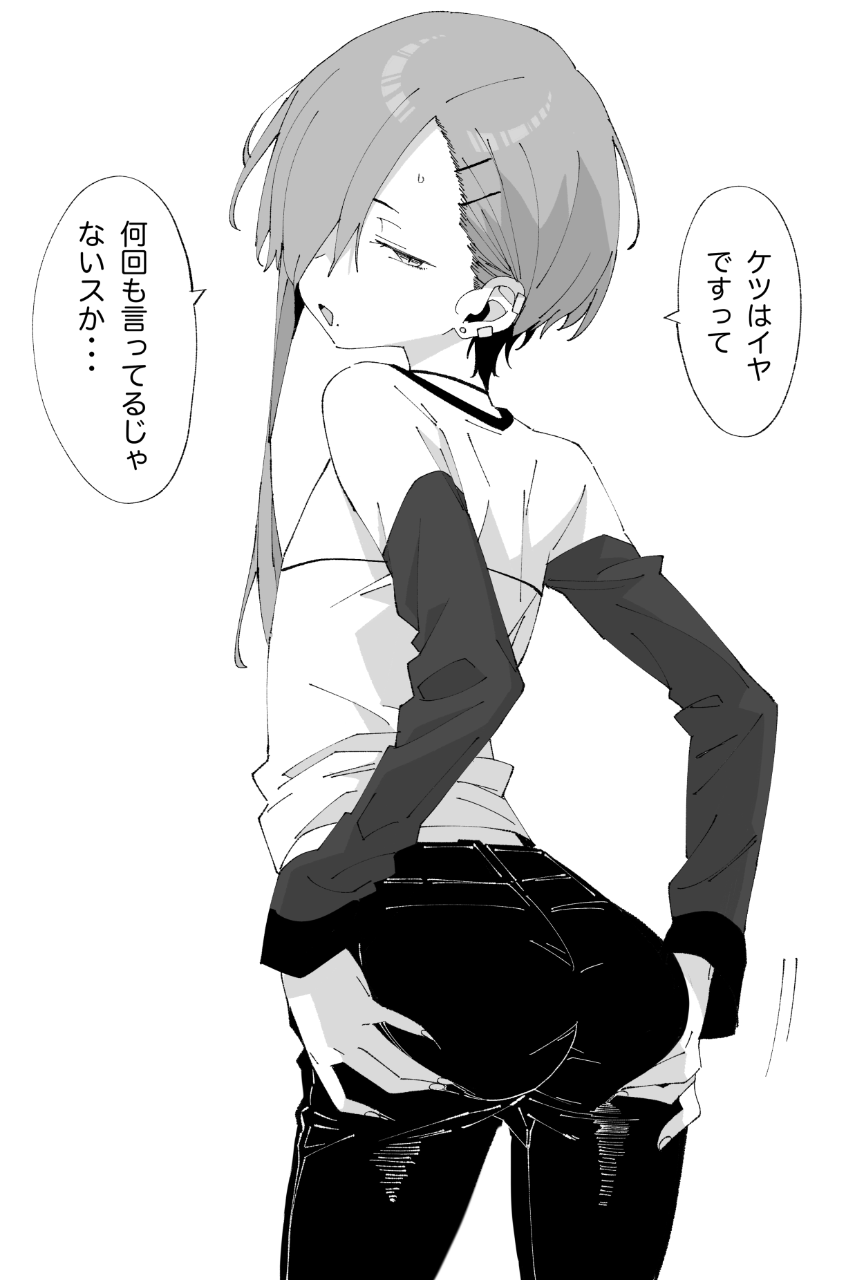 yomizu (rdad3278), lida (pokemon), staryu, nintendo, pokemon, pokemon legends: z-a, commentary, highres, 1girl, :o, blue hoodie, breasts, collarbone, cube hair ornament, earclip, gen 1 pokemon, hair ornament, hood, hoodie, leaning forward, leggings, light blush, long sleeves, open mouth, pokemon (creature), print shirt, shirt, single off shoulder, tassel, topknot, white background, zipper pull tab