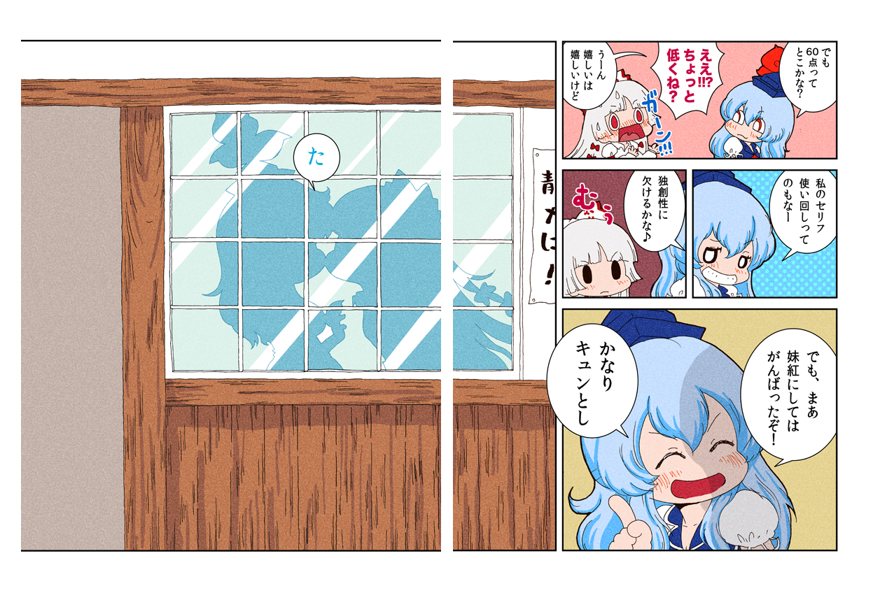 2girlsblue hairblushbowcomicfemale focushair bowhair ribbonhatkisslong hairmultiple girlsred eyesribbonyuri