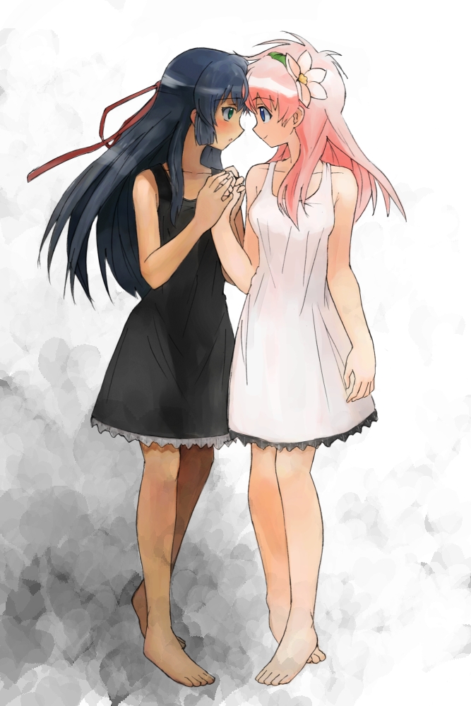 zhihuaiqiang, izayoi sakuya, remilia scarlet, touhou, chinese commentary, commentary request, highres, 2girls, apron, bat wings, black dress, black shoes, blank eyes, bouquet, braid, dress, expressionless, flower, frills, full body, hat, holding, holding bouquet, light smile, maid, maid apron, maid headdress, medium hair, mob cap, multiple girls, pink dress, red eyes, red flower, red rose, red shoes, rose, shoes, short sleeves, socks, standing, twin braids, vampire, white hair, white socks, wings