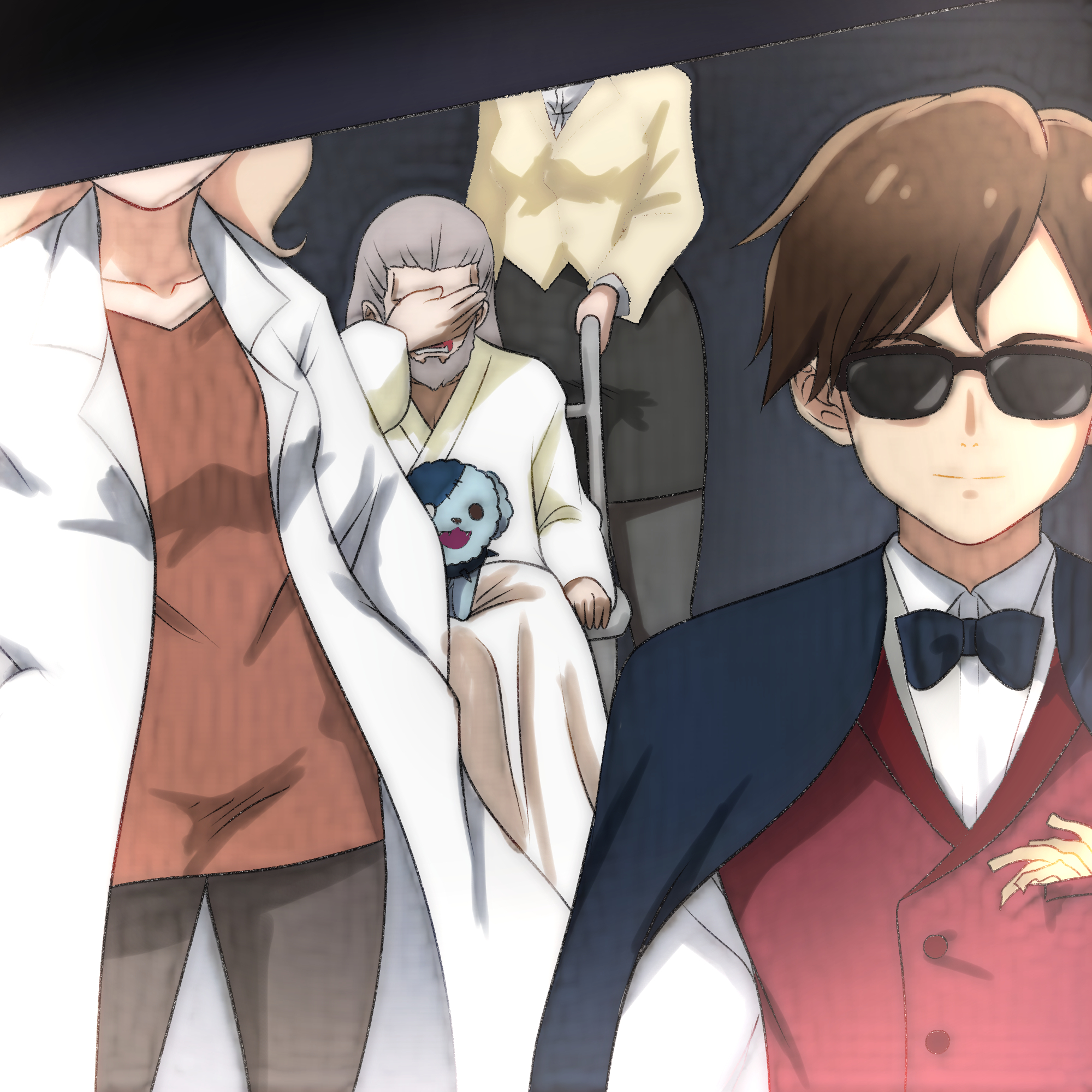 2boys2girlsanimalbeardblack backgroundblack bowblack bowtieblack capeblack pantyhoseblack skirtblue furbowbowtiebreastsbrown dressbrown haircapecoatcollarbonedogdressfacepalmfacial hairgrey hairhands in pocketshead out of framejacketjapanese clotheskimonolab coatlong hairlong sleeveslooking at viewermedium breastsmultiple boysmultiple girlsoldold manopen clothesopen coatopen mouthpantyhosepencil skirtpink hairred vestshirtshort hairsittingskirtstandingsunglassesteethvestwhite coatwhite kimonowhite shirtyellow jacketzombie