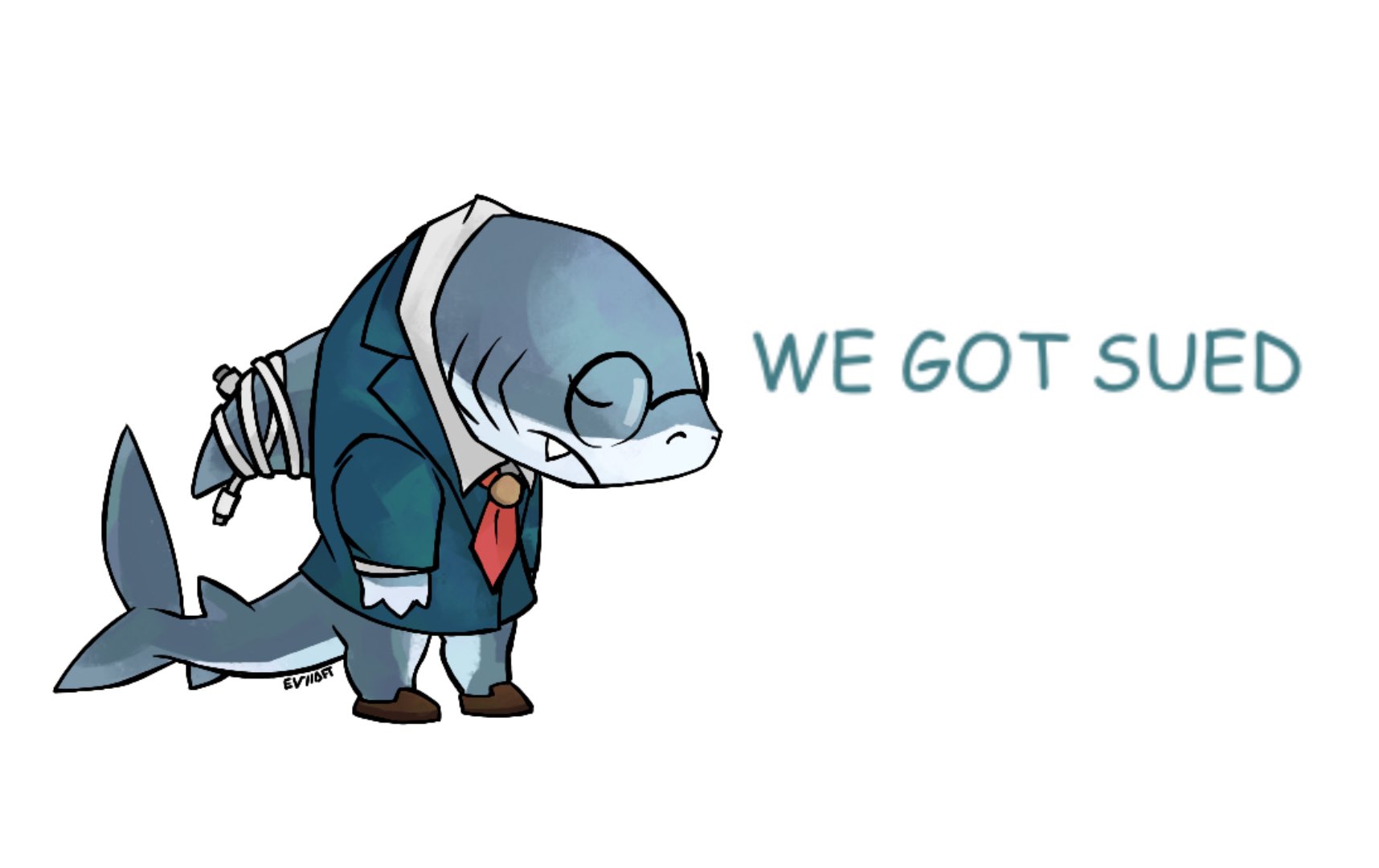 te ga tsumetai, shimamura charlotte, honey strap, nanashi inc., highres, 1girl, animal ears, bare shoulders, blue hair, bow, bowtie, breasts, cleavage, demon girl, demon horns, demon tail, detached collar, fake animal ears, hand on own hip, holding, holding tray, horns, large breasts, leotard, long hair, looking at viewer, pantyhose, playboy bunny, pointy ears, rabbit ears, solo, strapless, strapless leotard, tail, tray, virtual youtuber, wrist cuffs, yellow eyes