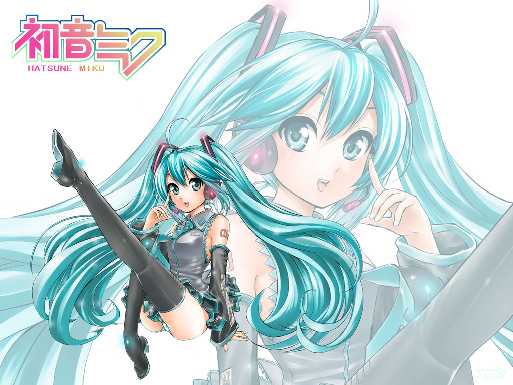 ahogeaqua eyesaqua hairdetached sleevesheadphonesheadsetlong hairnecktiepantiespantyshotsmilesolothighhighstwintailsunderwearzettai ryouiki