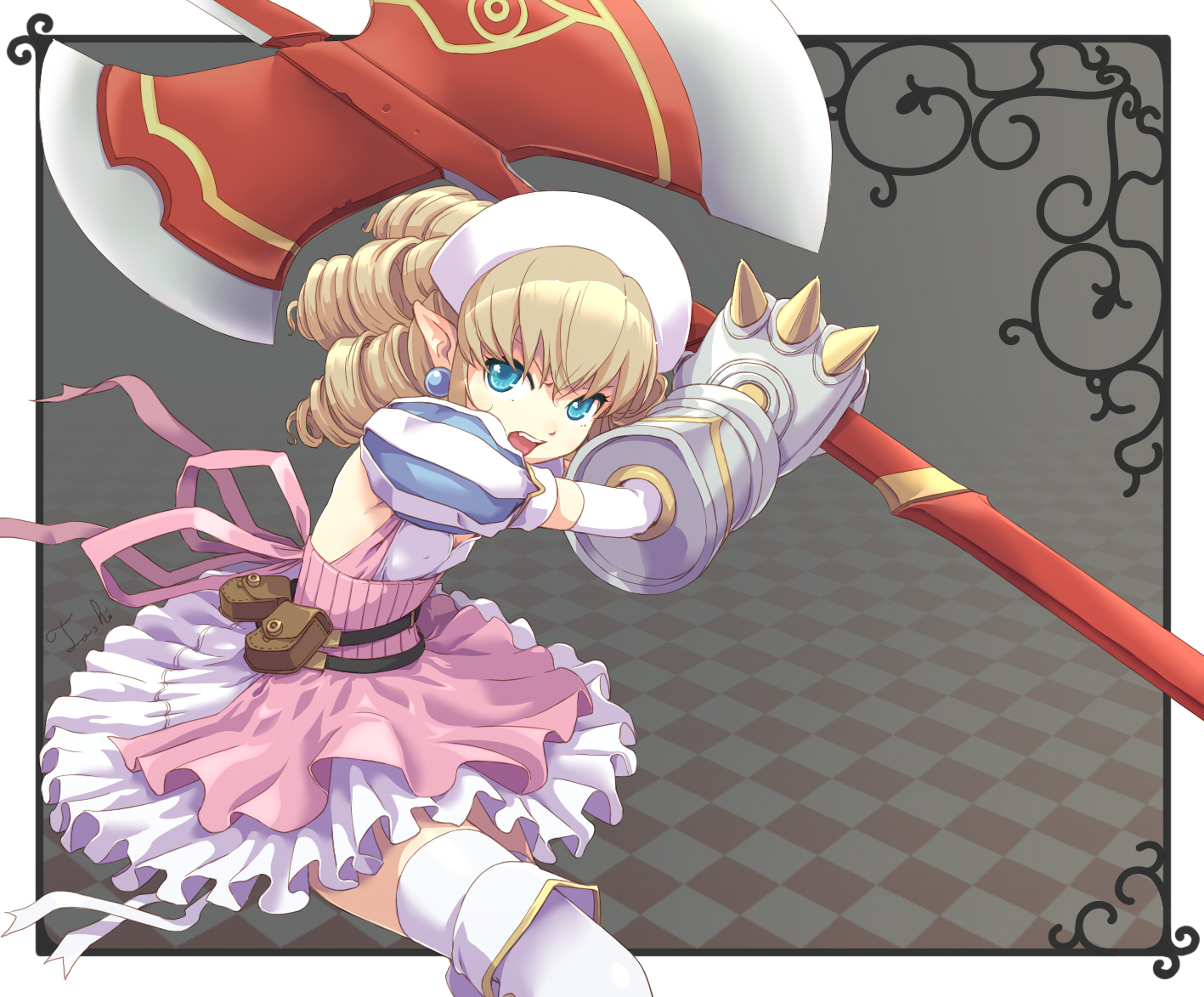 00s1girlarmorarmored dressaxeblue eyesbootsbrown hairchilddouble bladed axedressdrill hairdwarfearringselbow glovesfemale focusflat chestfrillsgauntletsgloveshairbandhuge weaponjewelrypointy earssolothigh bootsthighhighsweaponwhite thighhighs