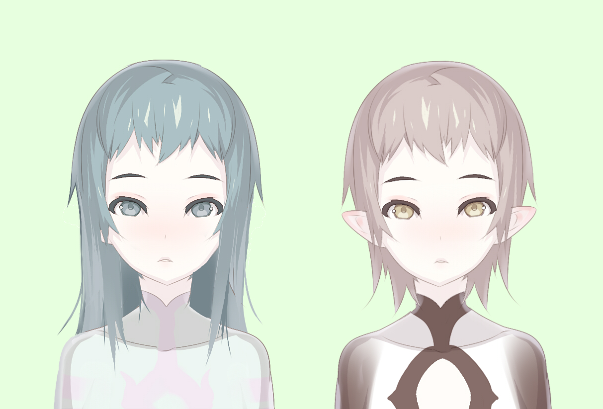 1boy1girlblack eyesblack hairblue eyesblue hairbrown eyesbrown haircomparisonlong hairpointy earsshort hairyellow eyes