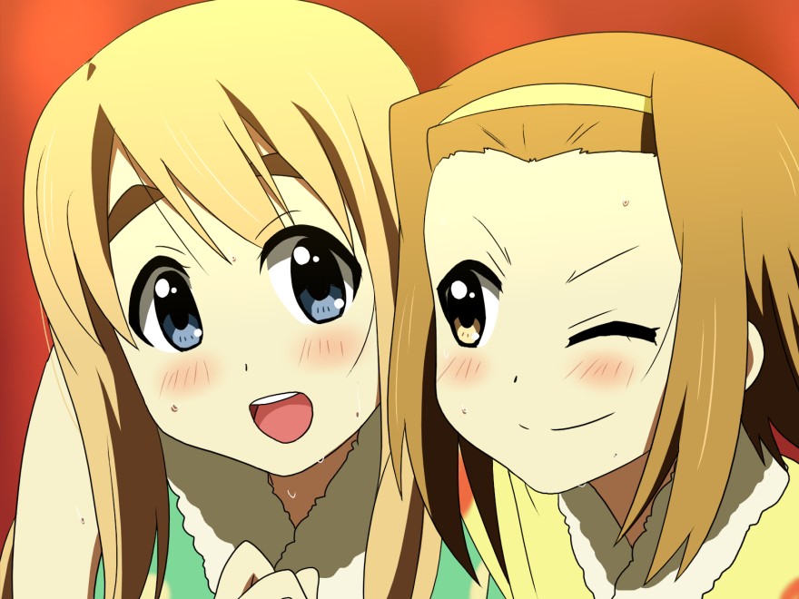 harano, flandre scarlet, touhou, 1girl, blonde hair, blood, bow, fangs, female focus, gradient background, hair ribbon, red eyes, ribbon, short hair, side ponytail, solo, tongue, upper body, wings
