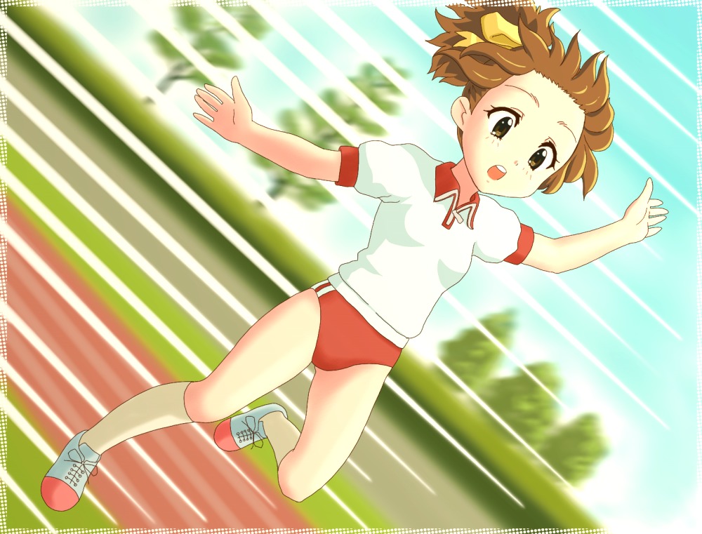 00s1girlbrown eyesbrown hairburumadutch anglefemale focusfull bodygym uniformjumpingmotion linesnatureorange burumaoutdoorsschool uniformshort hairskysolospeed lines