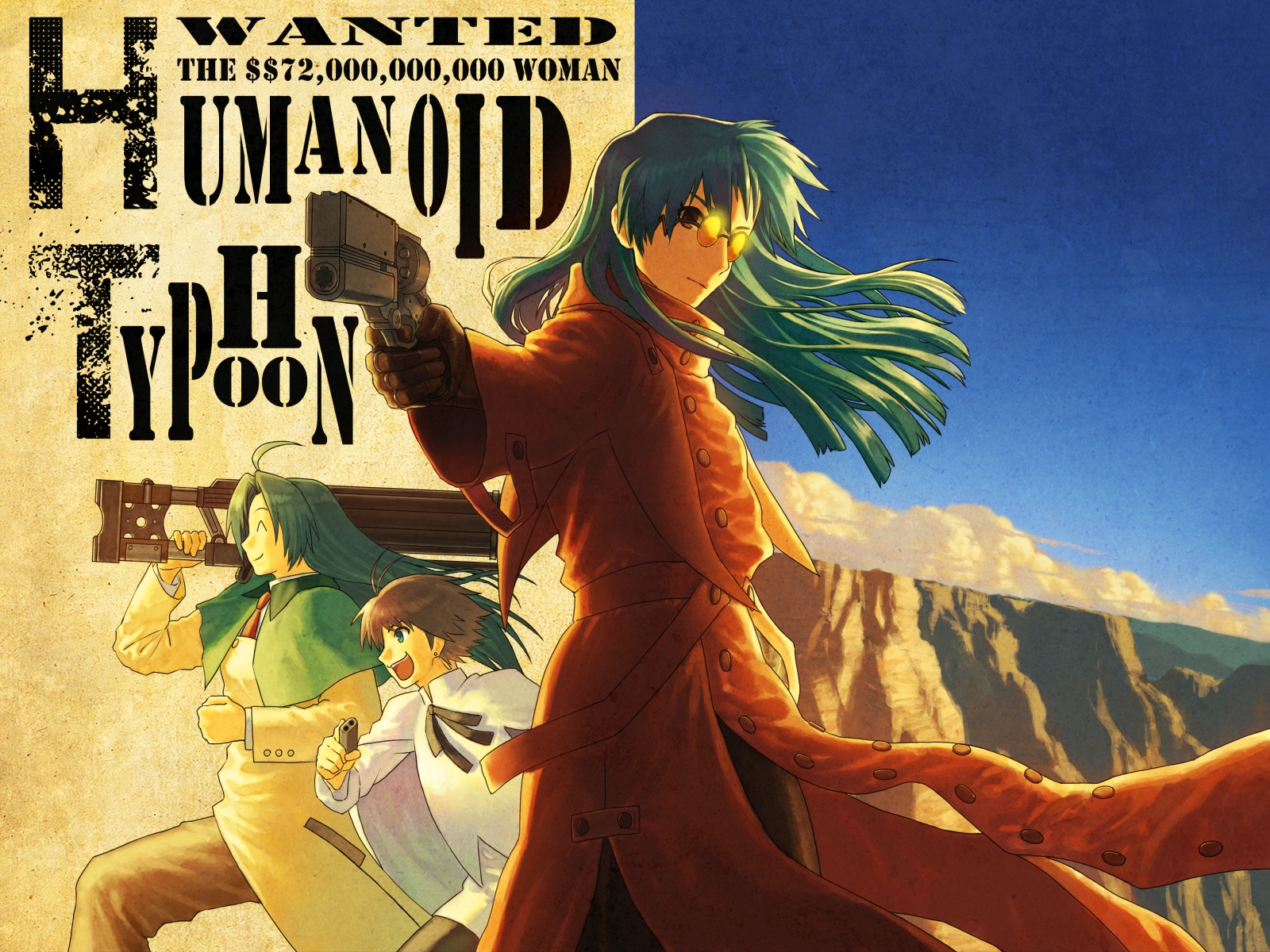 1boy3girlsagl arms .45 long coltahogeaimingaiming at viewerantenna hairaqua hairblack hairblue eyesbreak-action revolverbuttonscapeletclenched handcloakclosed eyescloudcoatcosplayearringsfloating hairgatling gunglovesgunhandgunholdingjewelrylong coatlong hairlooking at viewerlow bore axis revolvermeryl strife (cosplay)meryl stryfe (cosplay)milly thompson (cosplay)mountainmultiple girlsnecktieo'moutdoorsoutstretched armover shoulderpantspantyhoseparodypistolrevolverribbonrunningshort hairskysmilesunglassestrigger disciplinevash the stampede (cosplay)wanted posterweaponweapon over shoulderwind