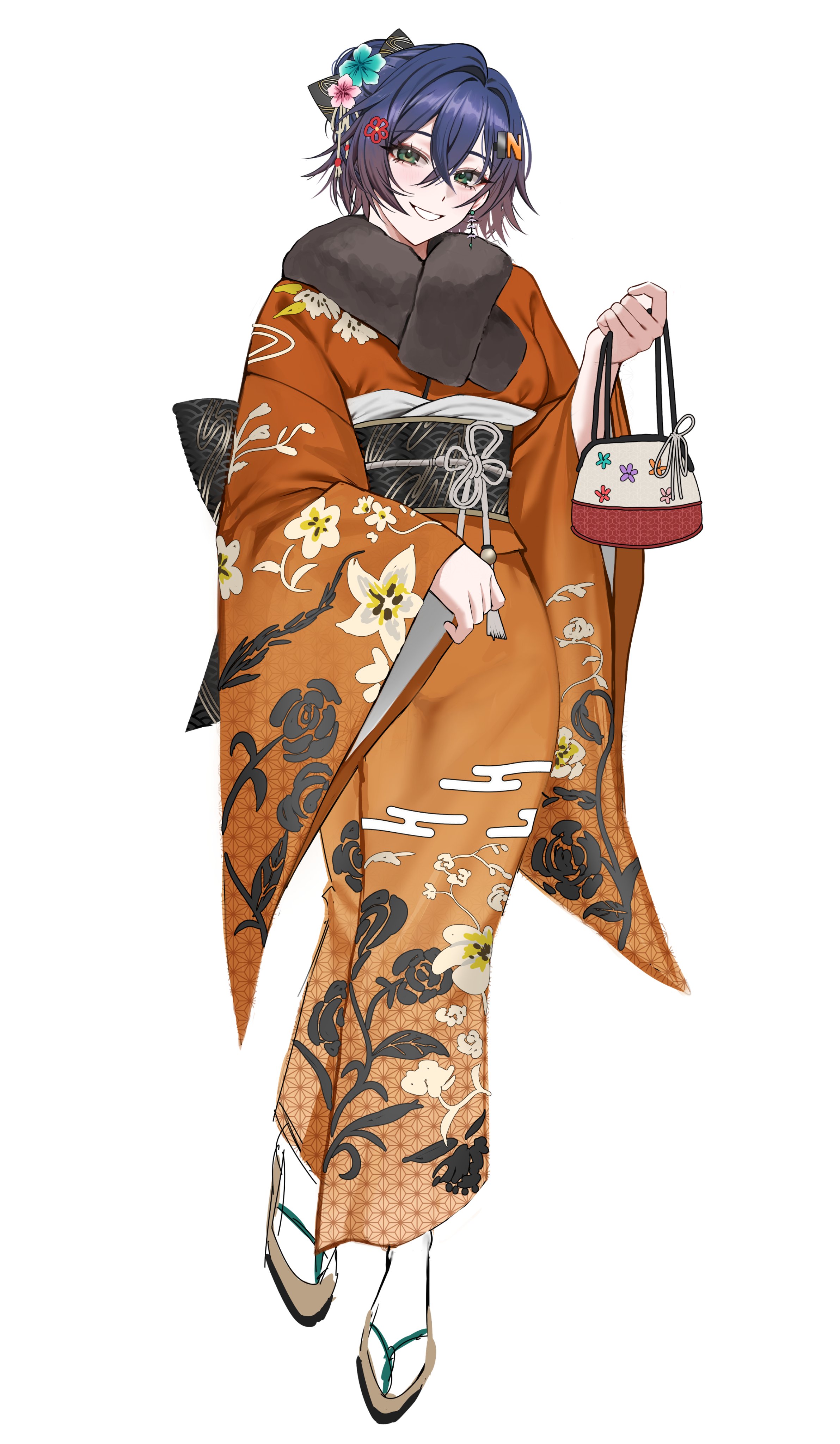 mei (ponponmei), rice shower (make up vampire!) (umamusume), rice shower (umamusume), umamusume, highres, 1girl, animal ears, black gloves, blue flower, blue rose, bow, breasts, brown hair, cleft of venus, fang, flower, gloves, hair flower, hair ornament, hair over one eye, halloween, horse ears, horse girl, horse tail, long hair, looking at viewer, nipples, official alternate costume, open mouth, puffy short sleeves, puffy sleeves, purple eyes, pussy, rose, shirt, short sleeves, skirt, small breasts, solo, tail, uncensored, wings