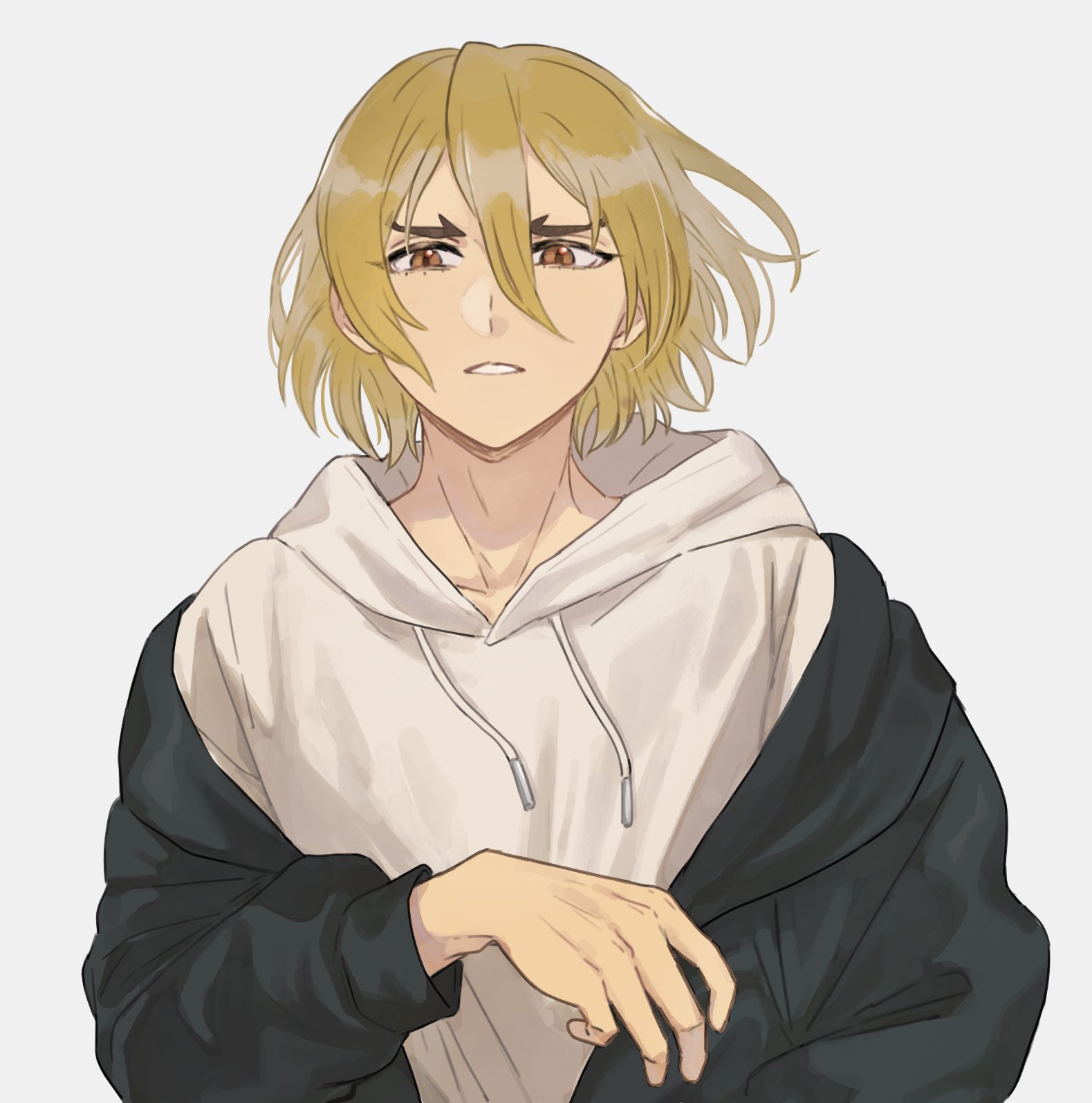 sio7x, baiken, sin kiske, guilty gear, guilty gear strive, absurdres, commentary, english commentary, highres, 1boy, blue eyes, cross, eyepatch, holding, holding sword, holding weapon, muscular, muscular male, short hair, sword, weapon