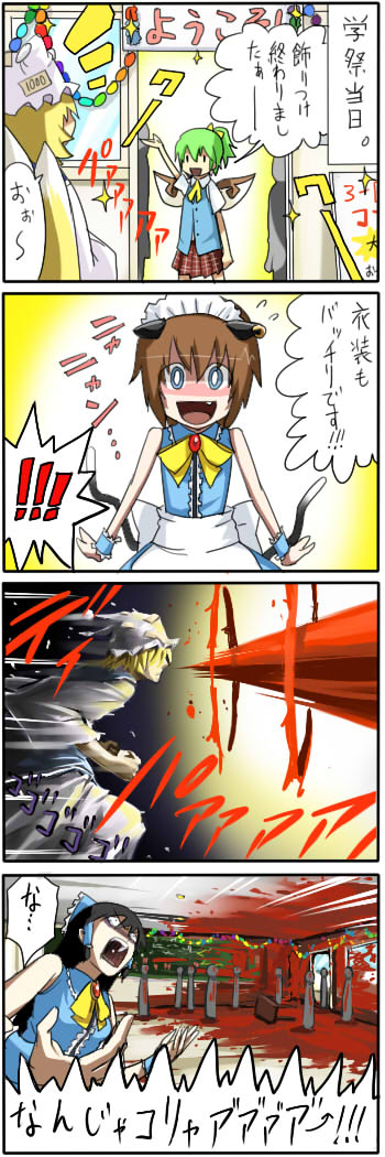 :d4girls4komaalternate coloralternate costumeanimal earsblack hairblonde hairbloodblue eyesbrown haircat earscat girlcat tailcomicearringsexcessive nosebleedfangfemale focusflying sweatdropsfox tailgreen hairhair ribbonhatjewelrymaidmultiple girlsmultiple tailsnekomatanosebleedopen mouthribbonsmiletailwhat