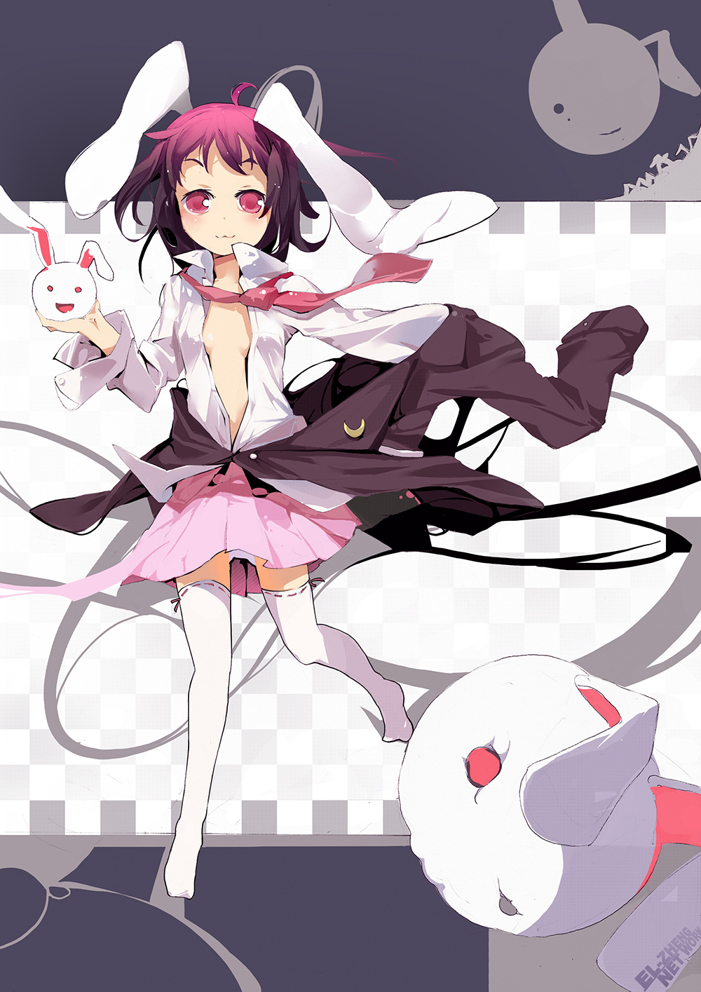 :31girlahogeanimal earsblazercosplayfemale focusformal clothesjacketnecktieopen clothesopen shirtpantiespurple eyespurple hairrabbit earsred eyesreisen udongein inaba (cosplay)shirtskirtsolosuitthighhighsunderwear