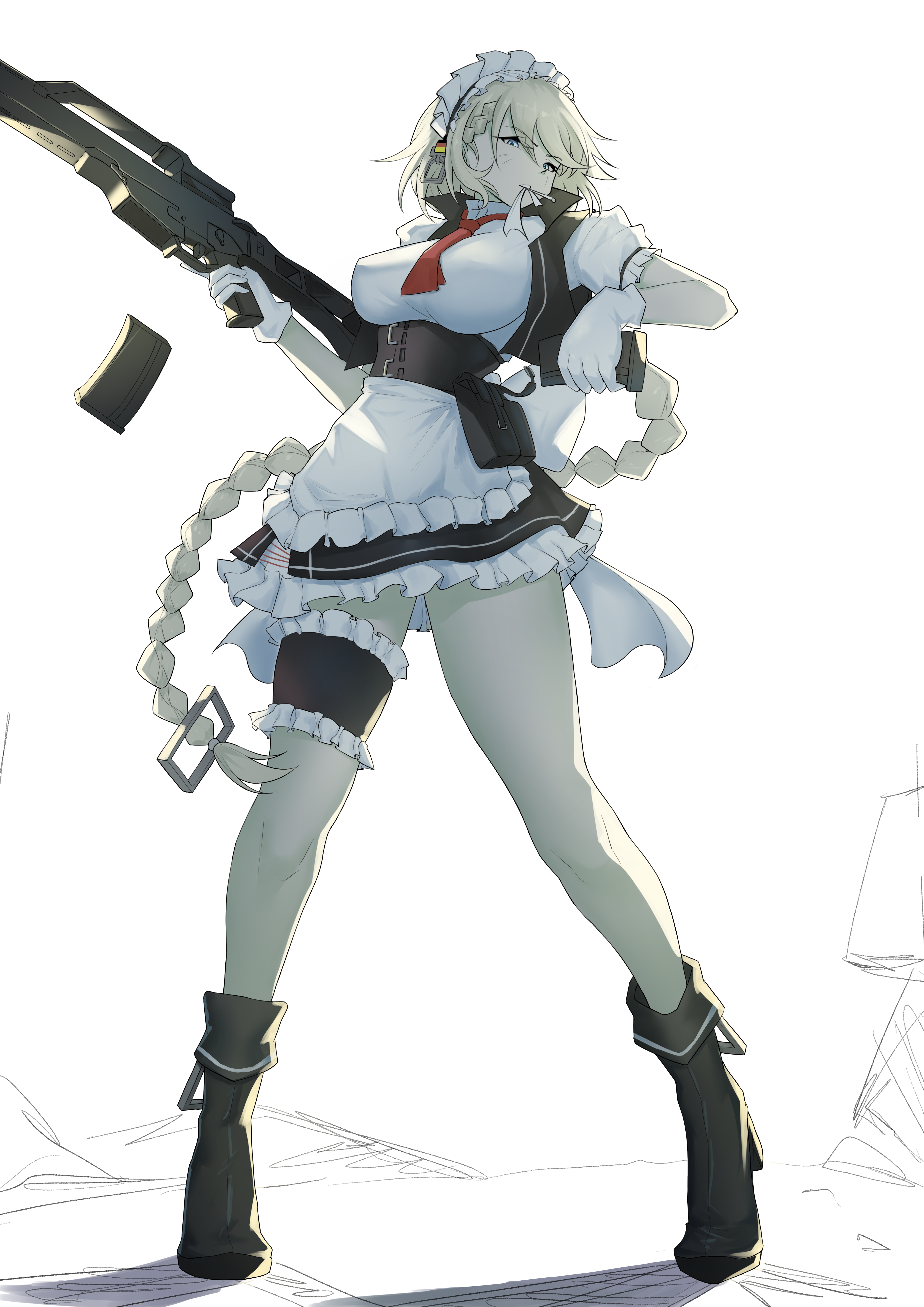 apronassault riflebare legsblack corsetblack jacketblack skirtblonde hairblue eyesblushbootsbraidbraided ponytailbreastscorsetcropped jacketfrilled skirtfrilled thigh strapfrillsfrom belowglovesgunhand uphigh heel bootshigh heelsholdingholding gunholding magazine (weapon)holding weaponjacketlegslong hairlooking at viewerlooking downmagazine (weapon)maid headdressmedium breastsminiskirtmouth holdnecktieopen clothesopen jacketred necktierifleshort necktieskirtthigh strapthighsvery long hairwaist apronweaponwhite apronwhite gloves