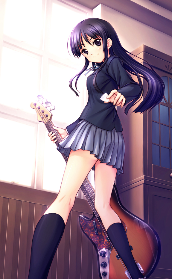 00s1girlbass guitarblack hairblazerblunt bangsfemale focushime cutindoorsinstrumentjacketkneehighsplectrumschool uniformsockssolo