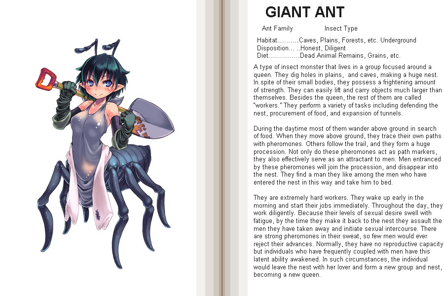 1girlanimal handsantant girlantennaearachnearthropod girlarthropod limbsblack hairblue eyesblushbugcharacter profileelbow glovesenglish textgauntletsglovesinsectinsect girlmonster girlpointy earsshort hairshovelsmilespadespider girltank toptaurtext focustowelworktool