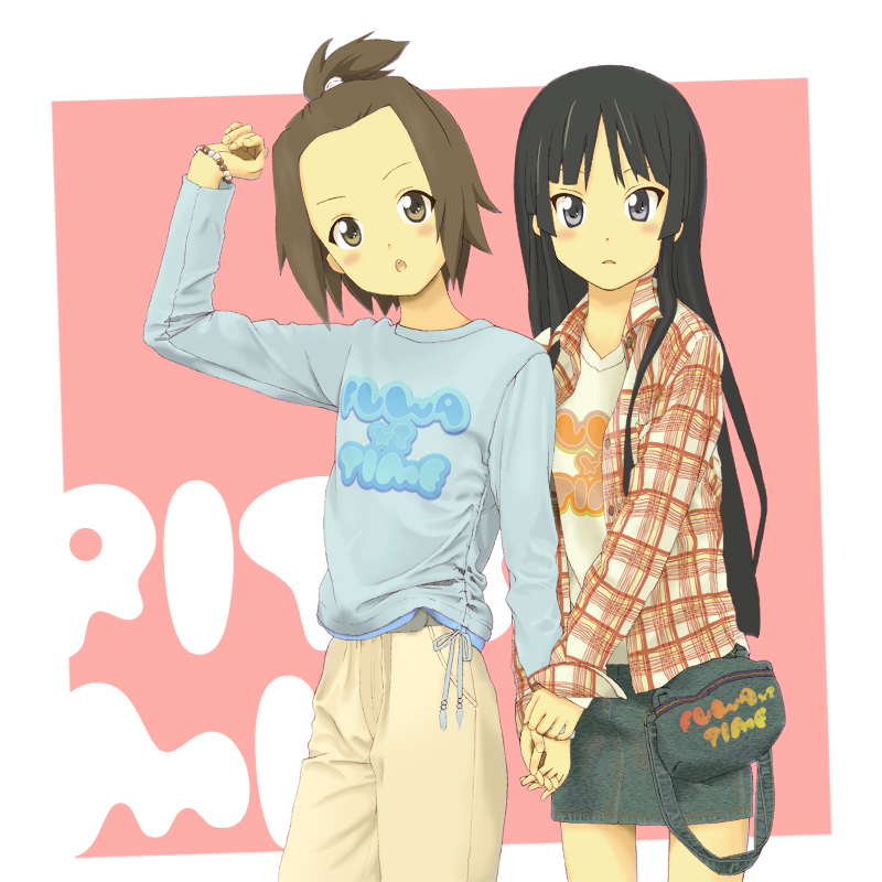00s2girlsblack hairblunt bangsbraceletfashionforeheadhime cutholding handsjewelrymultiple girlsplaid clothesplaid shirtshirty2k fashion