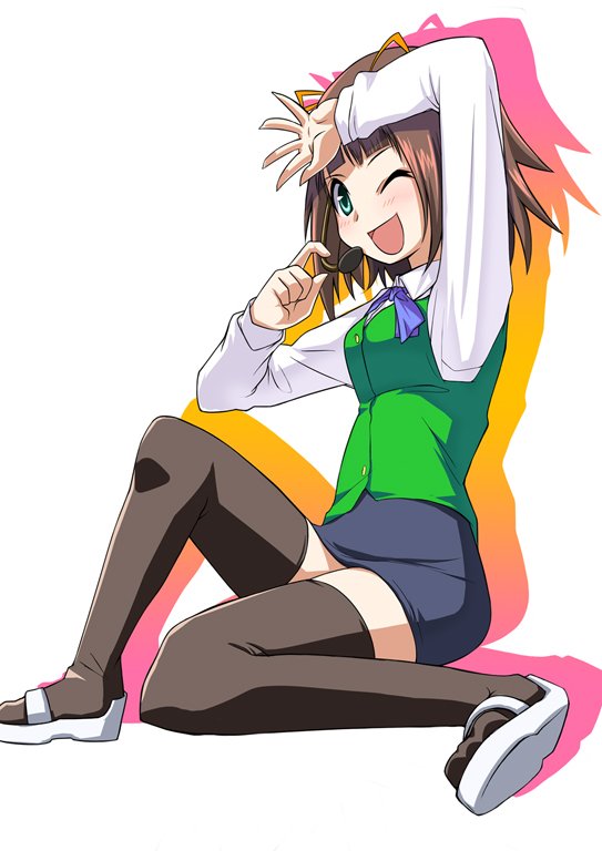 kani, kinu (p kinu22), shironeko sanbou, kanisawa kinu, tsuyokiss, game cg, 1girl, = =, arms up, blonde hair, blush, braid, female focus, flag, open mouth, school uniform, serafuku, short hair, solo, sweatdrop