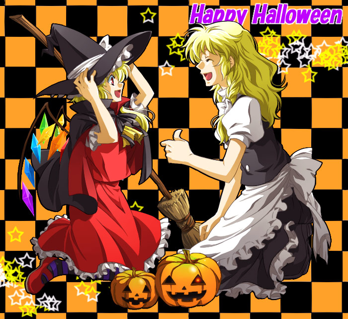 :d1boy2girlsapronblonde hairborrowed clothesbraidbroomcheckered backgroundclosed eyesenglish texteye contactfemale focusfrom sidehalloweenhand on headwearhappyhappy halloweenhatheadwear switchjack-o'-lanternkneehighslooking at anothermultiple girlsno headwearopen mouthpantyhosepumpkinred eyesshort hairside braidsmilesocksstar (symbol)striped clothesstriped pantyhosethighhighswaist apronwingswitchwitch hat