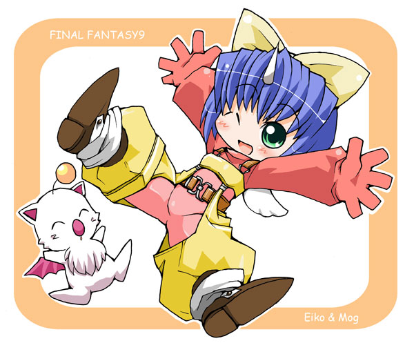 00s1girlbeltblue hairbowchildgreen eyesgreen hairhornsone eye closedshort hairsingle hornwinkyellow bow