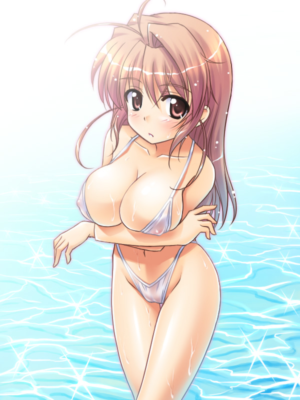1girlbikinibreastsbrown eyesbrown haircleavagefemale focuslarge breastslong hairsee-through clothessoloswimsuitwetwhite bikini