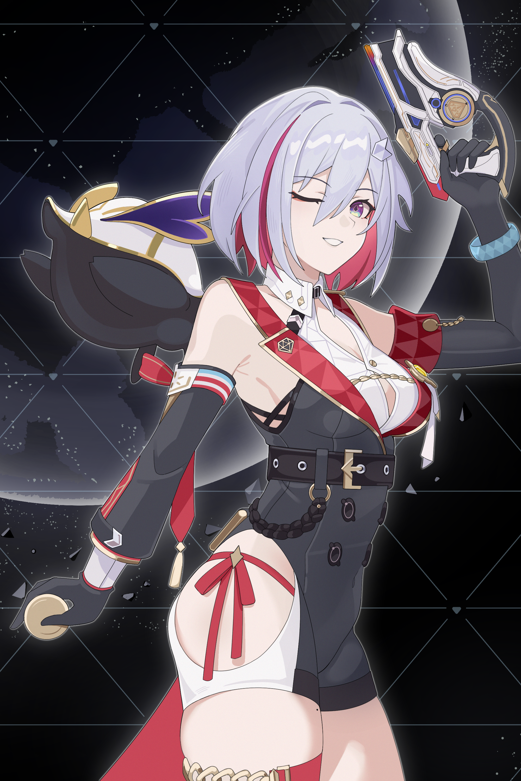 edmonmondo, aigis (persona), persona, persona 3, commentary, english commentary, highres, 1girl, android, blonde hair, blue eyes, bow, breasts, closed mouth, eyelashes, hair between eyes, hairband, red bow, short hair, simple background, small breasts, solo, upper body, white background
