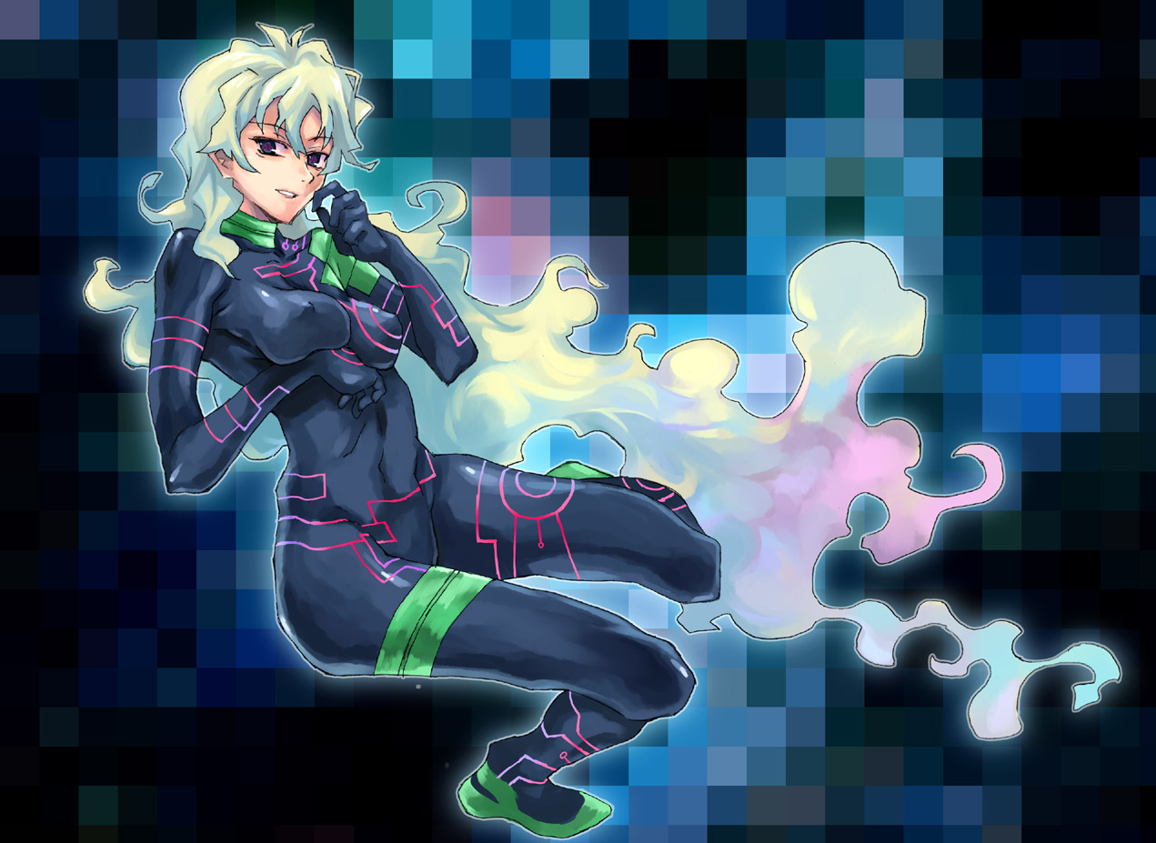 00s1girlblonde hairblue hairbreastsfemale focusfull bodylarge breastslong hairlooking at viewermulticolored hairpixel artskin tightsolotwo-tone hairvery long hairwavy hair