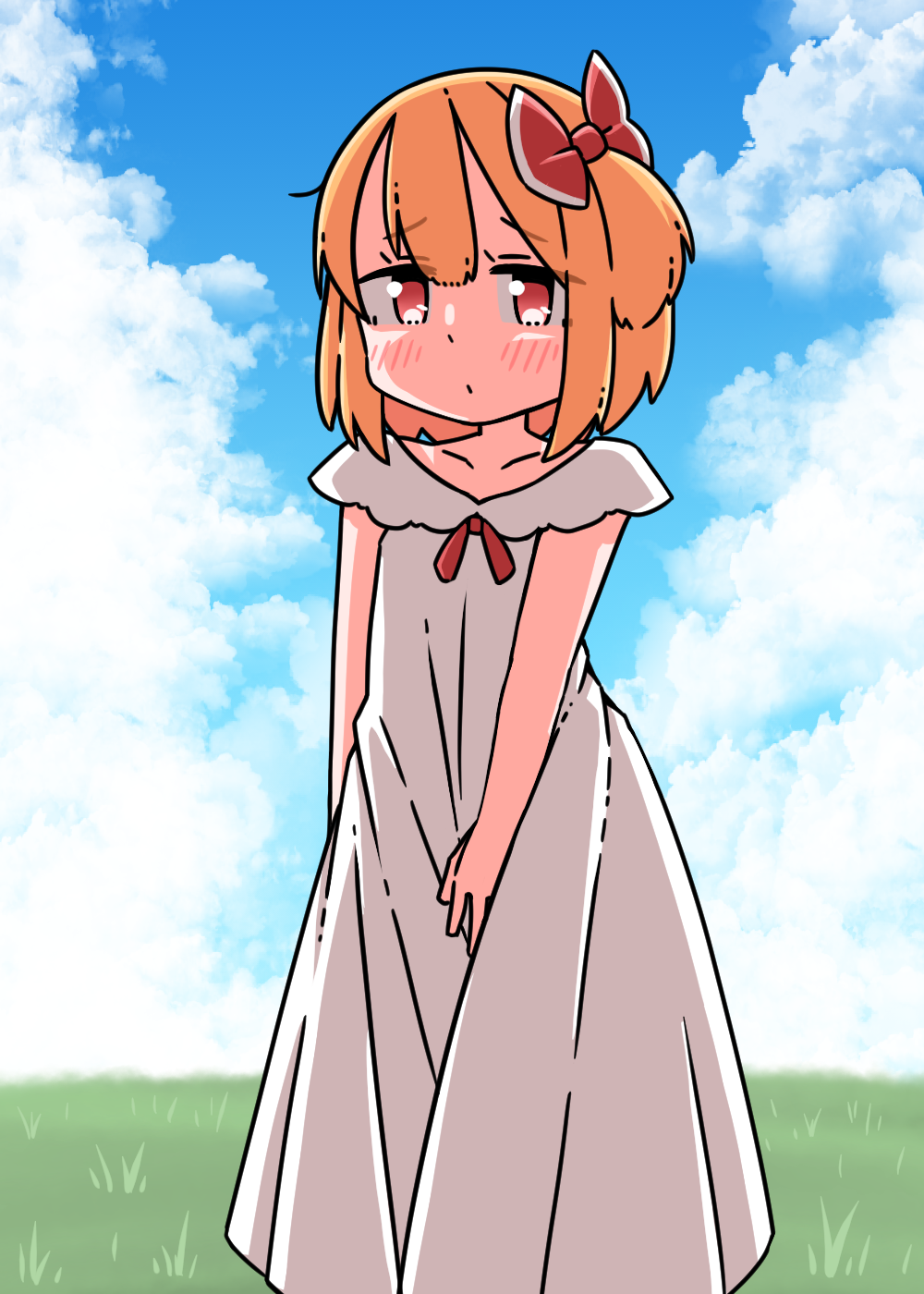 iroyopon, yuriel (orkastle), orkastle, commentary request, highres, 1girl, blonde hair, blue eyes, blush, breasts, buckle, chain, cowboy shot, cuffs, long hair, medium breasts, open mouth, scarf, shackles, side ponytail, sleeveless, solo, standing, thighhighs, white scarf, zettai ryouiki
