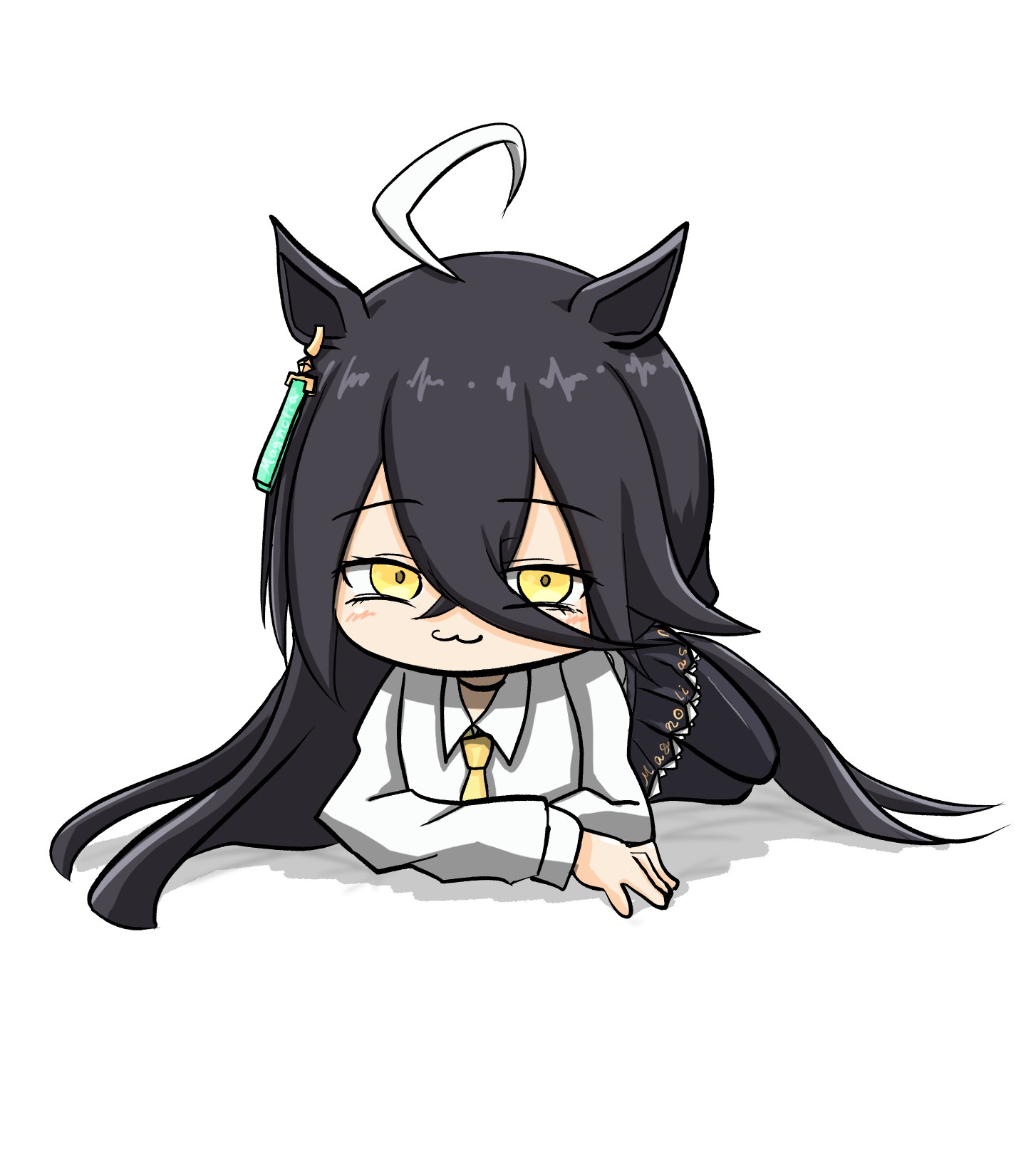 :31girlahogeanimal earsblack chokerblack hairblack pantyhoseblack skirtchibichibi onlychokerclosed mouthcollared shirtearringshair between eyeshorse earshorse girlhorse tailjewelrylong bangslong hairlong hair between eyeslong sleeveslooking at viewerlyingmulticolored hairnecktiepantyhoseshirtsingle earringskirtsmilesolotailvery long hairwhite hairwhite shirtyellow eyesyellow necktie