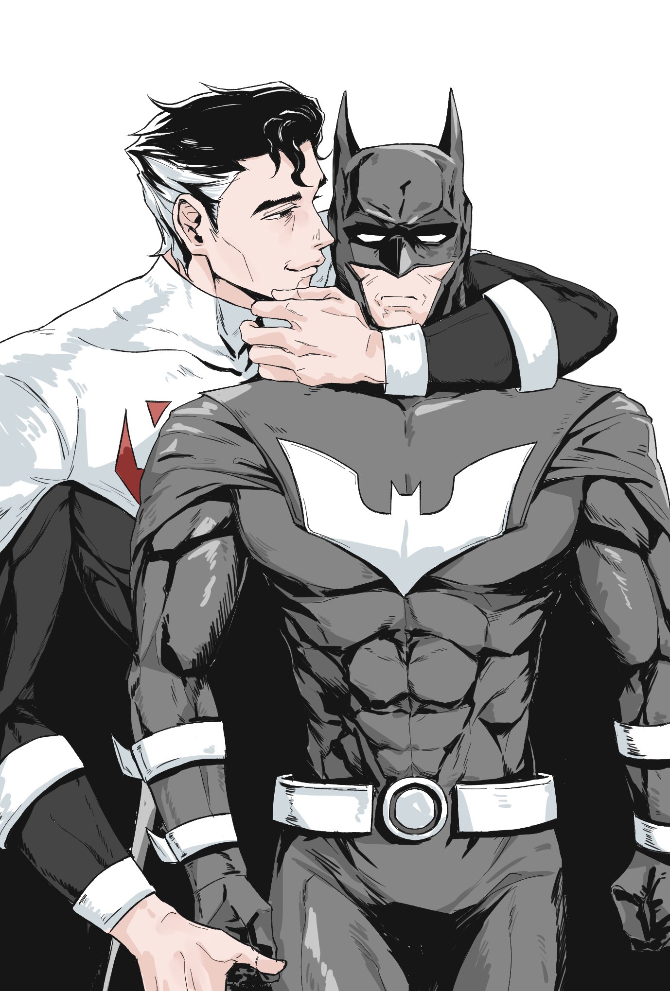 2boysabsarm around neckarm beltbeltbelt buckleblack hairbucklecapeclenched handsclosed mouthcovered collarbonecovered pectoralscowllong sleeveslooking at anothermale focusmatta425183multicolored hairmultiple boyspectoralsskin tightsmilestandingstreaked hairsuperhero costumewhite hairyaoi