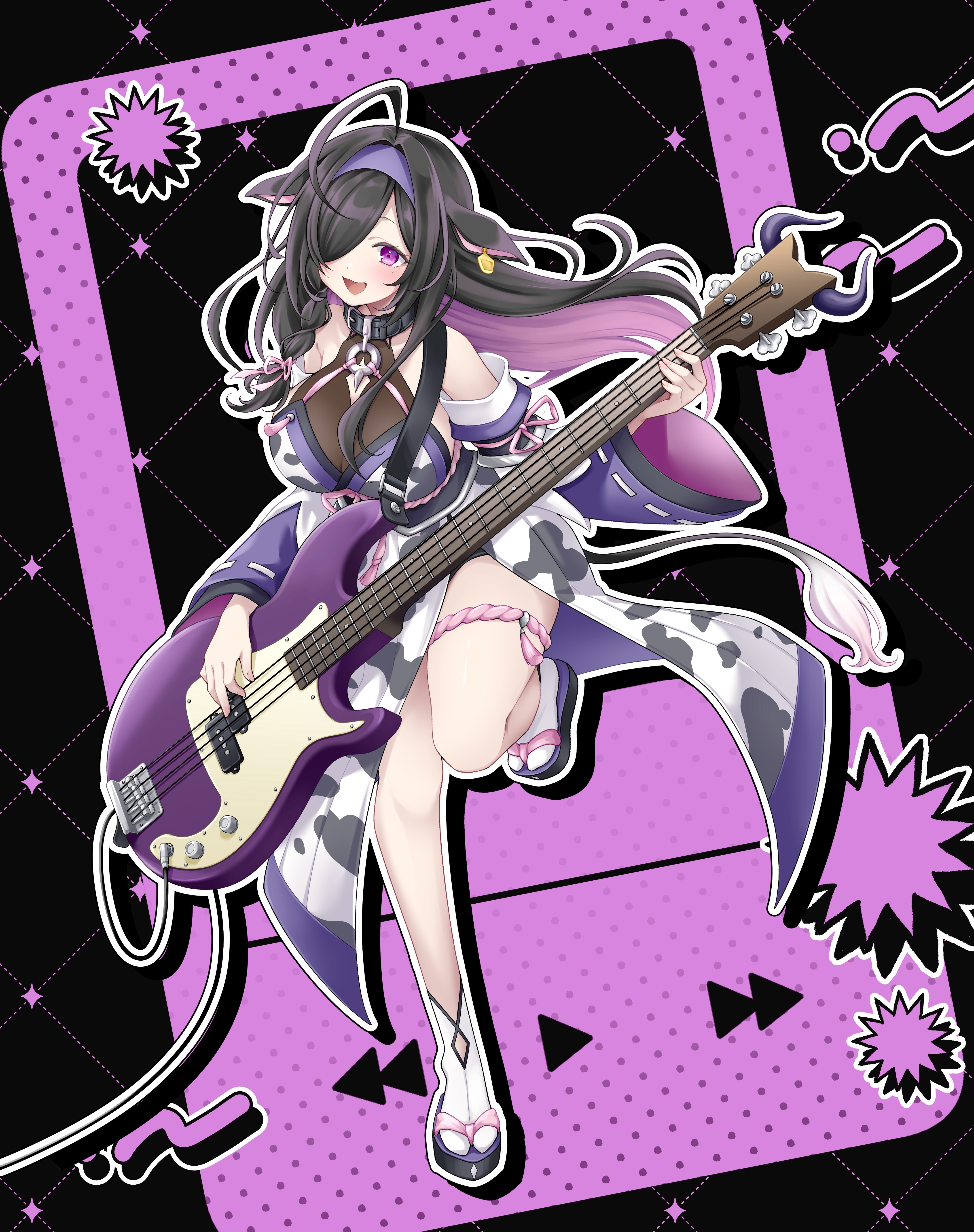 scaramouche (genshin impact), genshin impact, original, artist request, clothing request, commission, highres, second-party source, translation request, 1boy, 1girl, alternate costume, alternate hair length, alternate hairstyle, animal ear fluff, animal ears, armor, bishounen, blue gemstone, blue trim, cherry blossoms, chinese clothes, closed mouth, collar, commissioner insert, couple, curtained hair, detached sleeves, dress, fake horns, falling leaves, fingerless gloves, fingernails, flower, folding fan, fox ears, garden, gem, glint, gloves, hair bun, hair flower, hair intakes, hair ornament, hand fan, hayami momo (hayamimomo), hetero, holding, holding fan, horns, jade bracelet, leaf, long hair, long sleeves, looking at viewer, mandarin collar, middle ring, orb, outdoors, parted bangs, pauldrons, pink eyes, pink flower, pink hair, purple eyes, purple gloves, purple hair, railing, ripples, shoulder armor, single hair bun, single pauldron, smile, tassel, thighhighs, tsurime, very long hair, white collar, white dress, white flower, white sleeves, white thighhighs, wide sleeves, wispy bangs