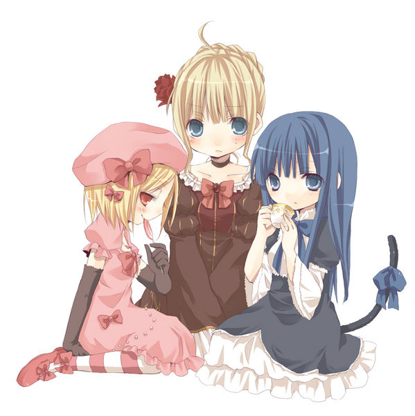 lack, 3boys, battle, bow (weapon), demon, fighting, fire, glowing, horns, lava, male focus, multiple boys, sword, weapon
