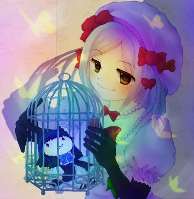 00s1girlberetblonde hairbugbutterflycagedolldressfemale focusgemhatinsectpearl (gemstone)pink hatribbonshort hairsmilesolox mouthyellow eyes