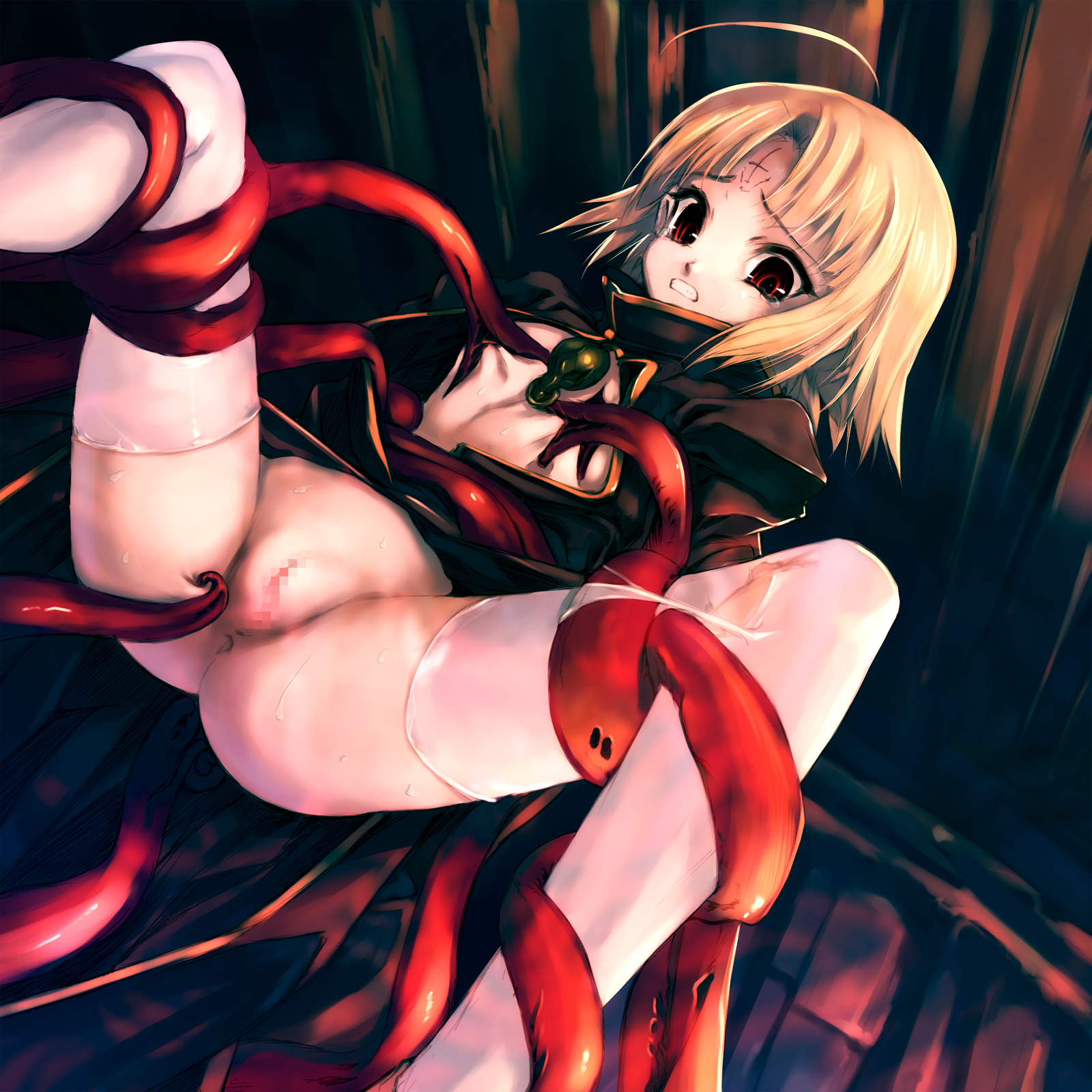 satou atsuki, c.c., kouzuki kallen, code geass, translation request, 00s, 2girls, bare shoulders, blue eyes, bottomless, breasts, breasts squeezed together, covered erect nipples, fang, green hair, large breasts, multiple girls, oekaki, red hair, resize, sleeveless, sleeveless turtleneck, tail, turtleneck, yellow eyes