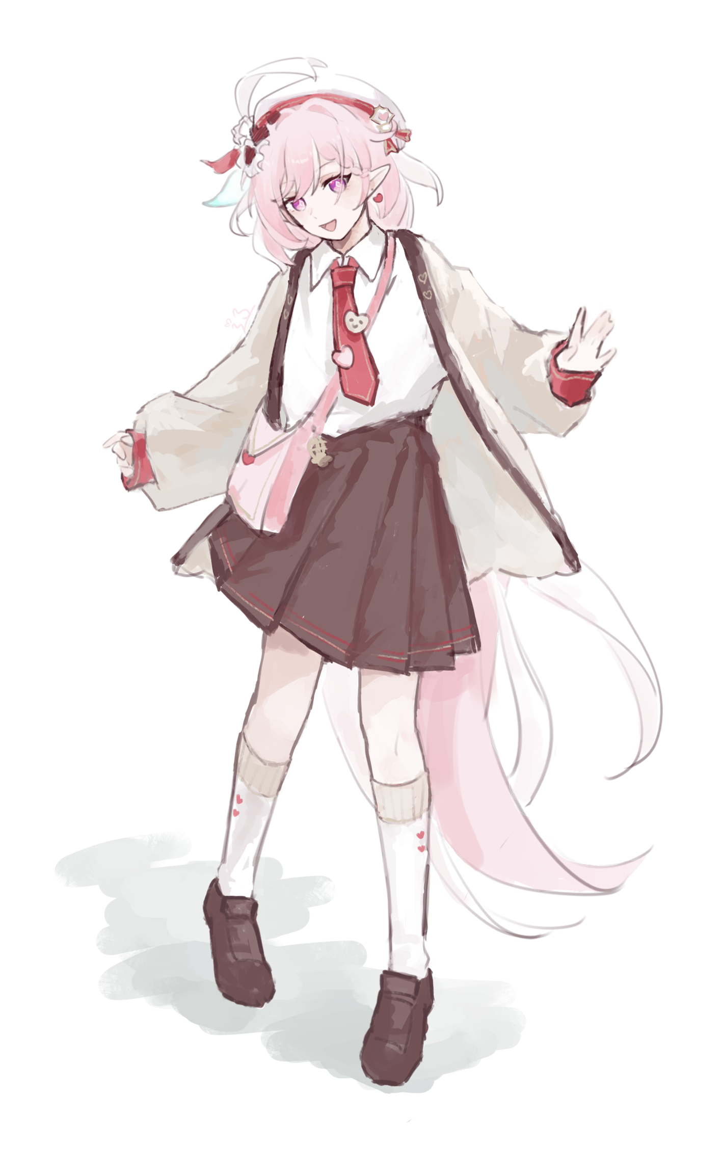 1girlalternate costumebagberetblack shoesblack skirtcoatdiamond (shape)diamond-shaped pupilsearringselffull bodygrey coathatheartheart earringsjewelrylong hairlooking at viewermulticolored hairnecktiepink hairpleated skirtpointy earspurple eyesred necktieschool uniformshoesshoulder bagsimple backgroundskirtsockssolosymbol-shaped pupilstwo-tone hairvery long hairwhite backgroundwhite hairwhite socksyily501902