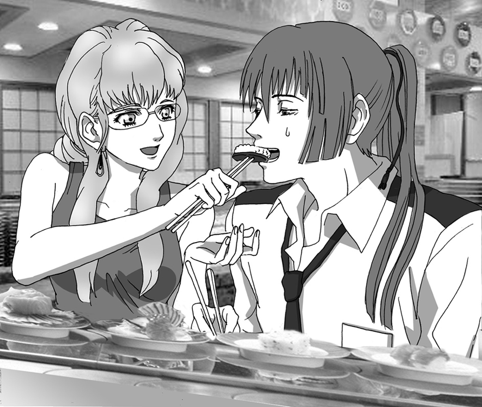 momio, oui (character), sangokushi taisen, bad id, bad pixiv id, 1girl, black hair, blue eyes, blush, breasts, cameltoe, clothes lift, girl on top, huge breasts, panties, simple background, sitting, sitting on face, sitting on person, skirt, skirt lift, solo focus, swept bangs, thighhighs, underwear, upskirt, white background, white panties