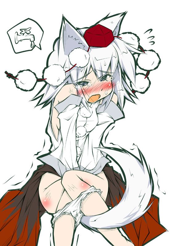 1girlanimal earsblushdetached sleevesfemale focushathave to peepantiespanty pullshort hairsolotailtearstokin hatunderwearwhite hairwolf earswolf tail