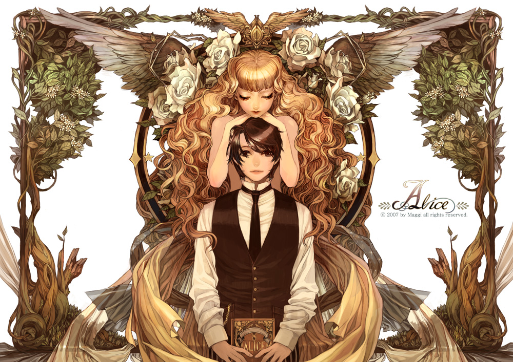 00s1boy1girl2007bare shouldersblonde hairbookbrown hairclosed eyesclothed male nude femalecurly hairflowerhands on another's headheteroholdingholding bookhughug from behindleaflong hairlong sleeveslooking at viewerlooking downnecktienudeplantroseshirtsmilevery long hairvestwhite flowerwhite rosewings