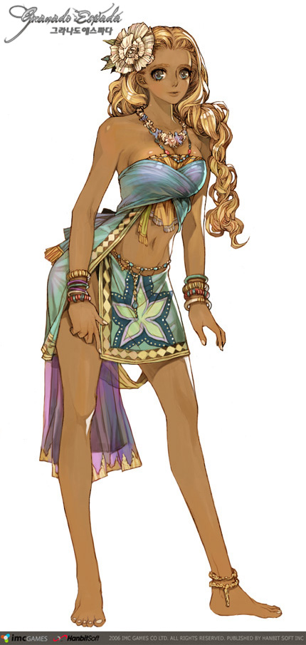 1girlbarefootblonde hairblue eyesbraceletbreastscopyright namedancerdark skindark-skinned femalefeetfemale focusflowerfull bodyhair flowerhair ornamentjewelrylarge breastslegslong hairlots of jewelrymidriffnavelnecklacesarongsolostanding