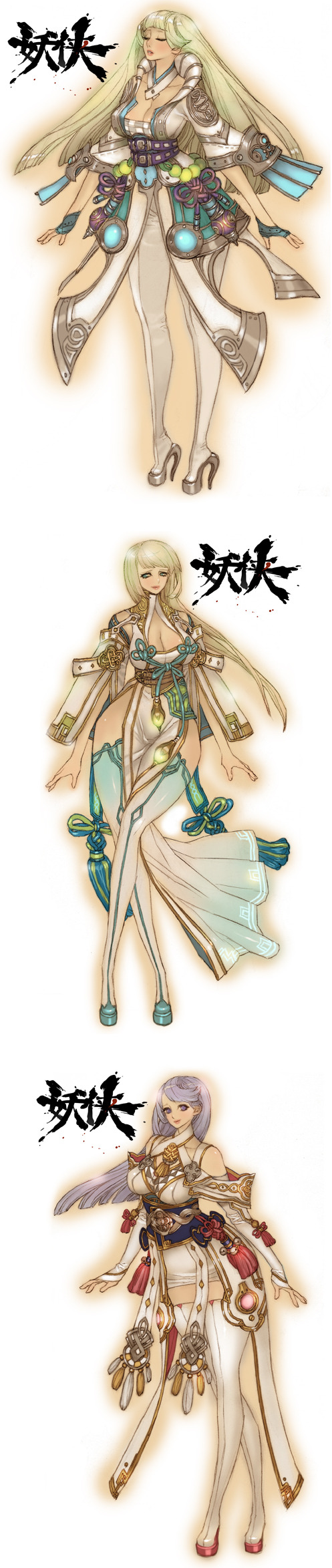 3girlsblonde hairblue hairbreastscleavagecurvydark skindark-skinned femalefull bodygreen hairhigh heelship focuslarge breastslong hairmultiple girlsshoesthighhighswhite thighhighswide hips