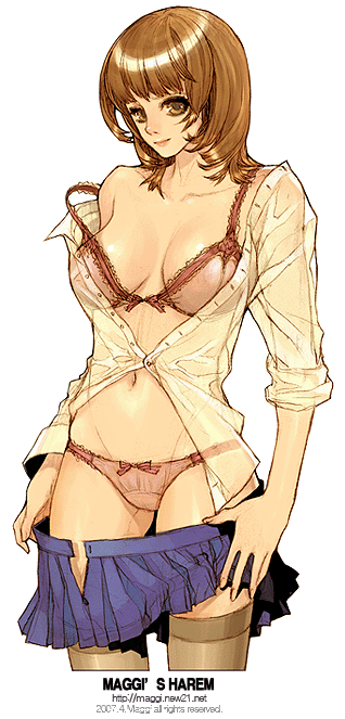 1girlbrabreastsbrown eyesbrown hairfemale focuslingerielooking at viewermicroskirtminiskirtpantiespleated skirtsee-through clothesskirtsleeves rolled upsolostandingthighhighstransparent backgroundunderwearundressing
