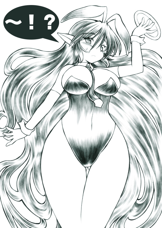 1boy1girlanimal earsbetween breastsblushbreastsclothes between breastscurvyelbow glovesfake animal earsfemale focusglovesgreen themelarge breastslong hairmonochromenecktieplayboy bunnypointy earsrabbit earssolothigh gaptrayvery long hairwide hipswrist cuffs
