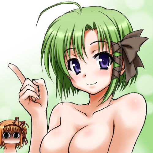 00s1boy2girlsahogebreast envybreastschibichibi insetflat chestgreen hairhair ribbonindex finger raisedlarge breastslooking at viewermultiple girlsnudepurple eyesribbonsmiletopless femaleupper bodyyandere