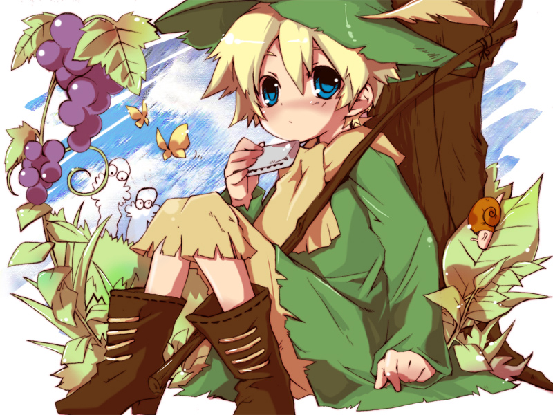 1boyblonde hairblue eyesbootsbugbutterflyfoodfruitgrapesharmonicahatinstrumentmale focusnatureoutdoorsshort hairsittingskysnailsolo
