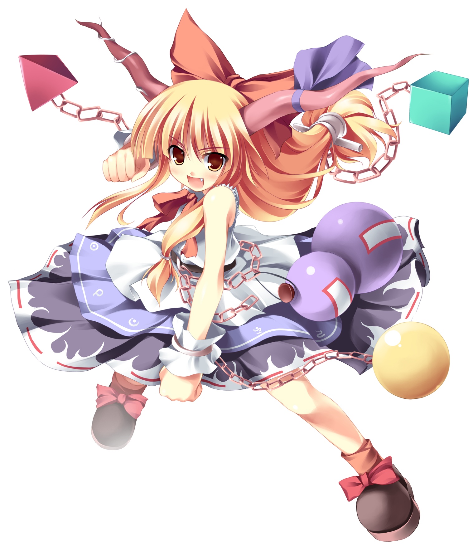 :d1girlballbare shouldersblack shoesblunt bangsbowbrown sockschainclenched handcubefangfemale focusfootwear bowgourdhair bowhorn ornamenthorn ribbonhornslong hairlooking at viewerlow-tied long hairmatching hair/eyesneck ribbonopen mouthorange eyesorange hairpurple ribbonpyramid (structure)red bowred ribbonribbonshirtshoessimple backgroundskirtskirt setsleevelesssleeveless shirtsmilesockssolov-shaped eyebrowswhite background